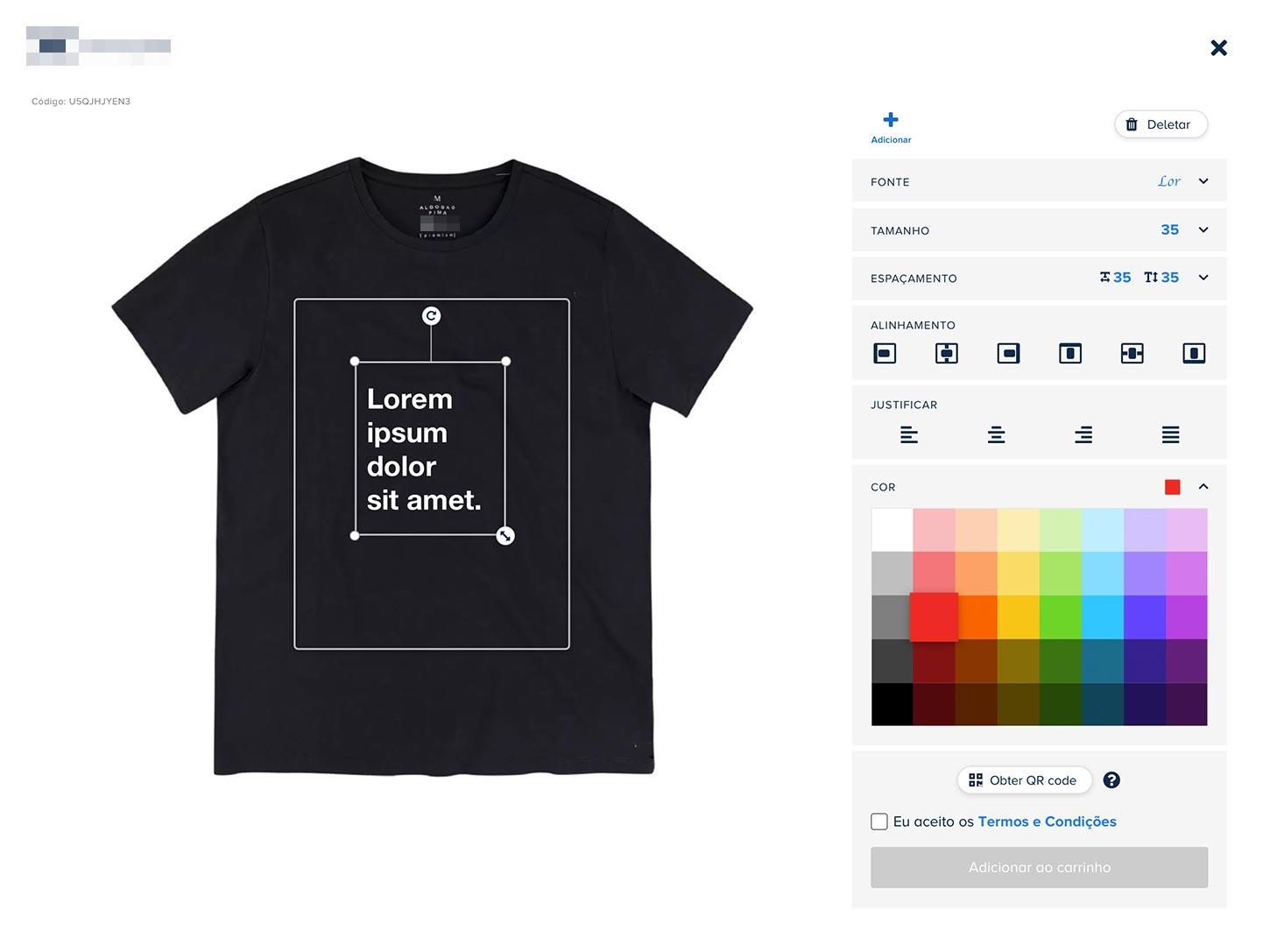 Interface design of a web application tool for customising apparel on a well known fashion company's e-commerce.